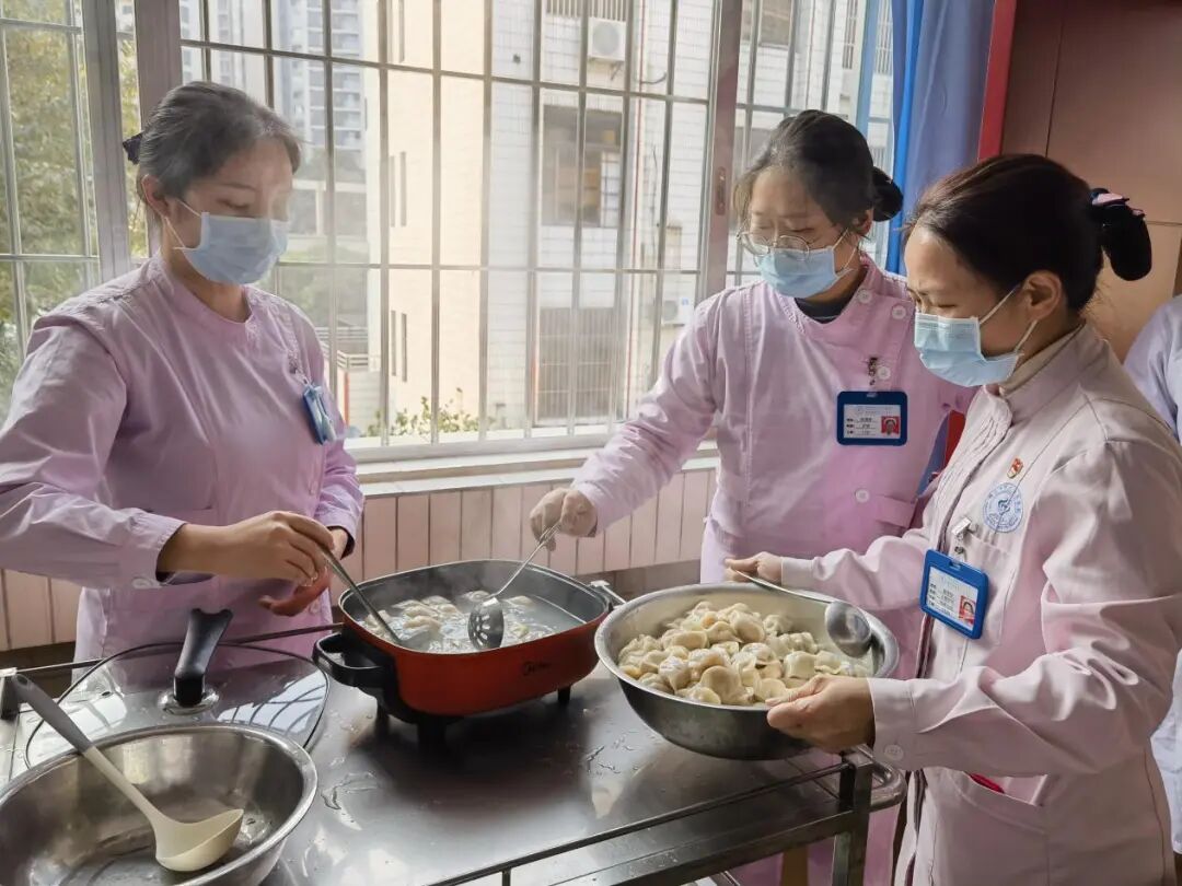 活动当日,医护人员与社工早早准备就绪。精神康复患者与工作人员们分工协作,一个个白白胖胖的饺子在锅中翻滚,饺子的香气弥漫着整个住院部,让原本清冷的病房充满了家的味道。医务社工作为精准化关怀服务的重要角色,本次活动设计的“爱心饺子”环节聚焦精神康复患者节日情感缺失的核心需求,通过复刻家庭节庆场景,搭建医患情感沟通的桥梁。